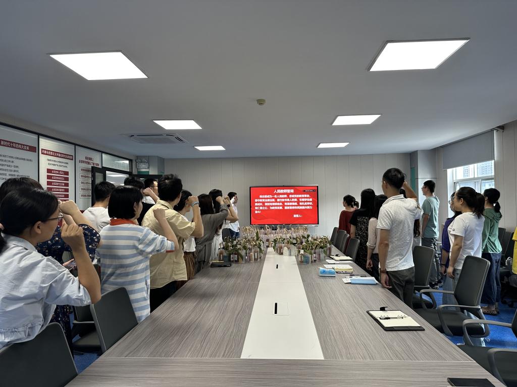 最后学院青年博士水忠昊带领全体教师宣誓,重温人民教师誓词。
