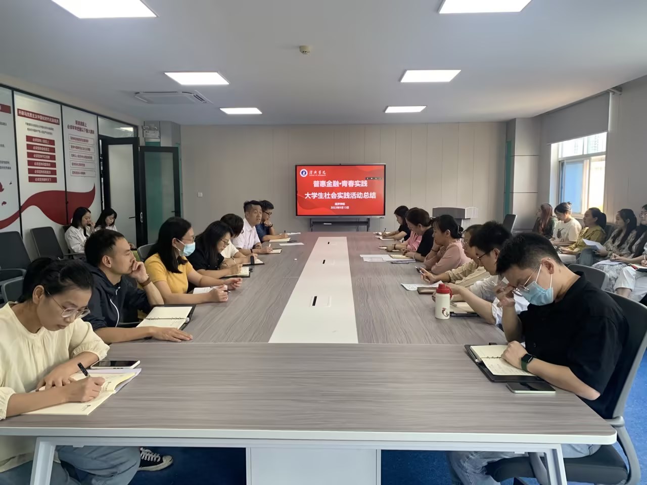 9月13日,经济学院在会议室召开普惠金融•青春践行老员工社会实践活动总结会,公司党政班子及全体教师参加会议,会议由副经理盖卫东主持。