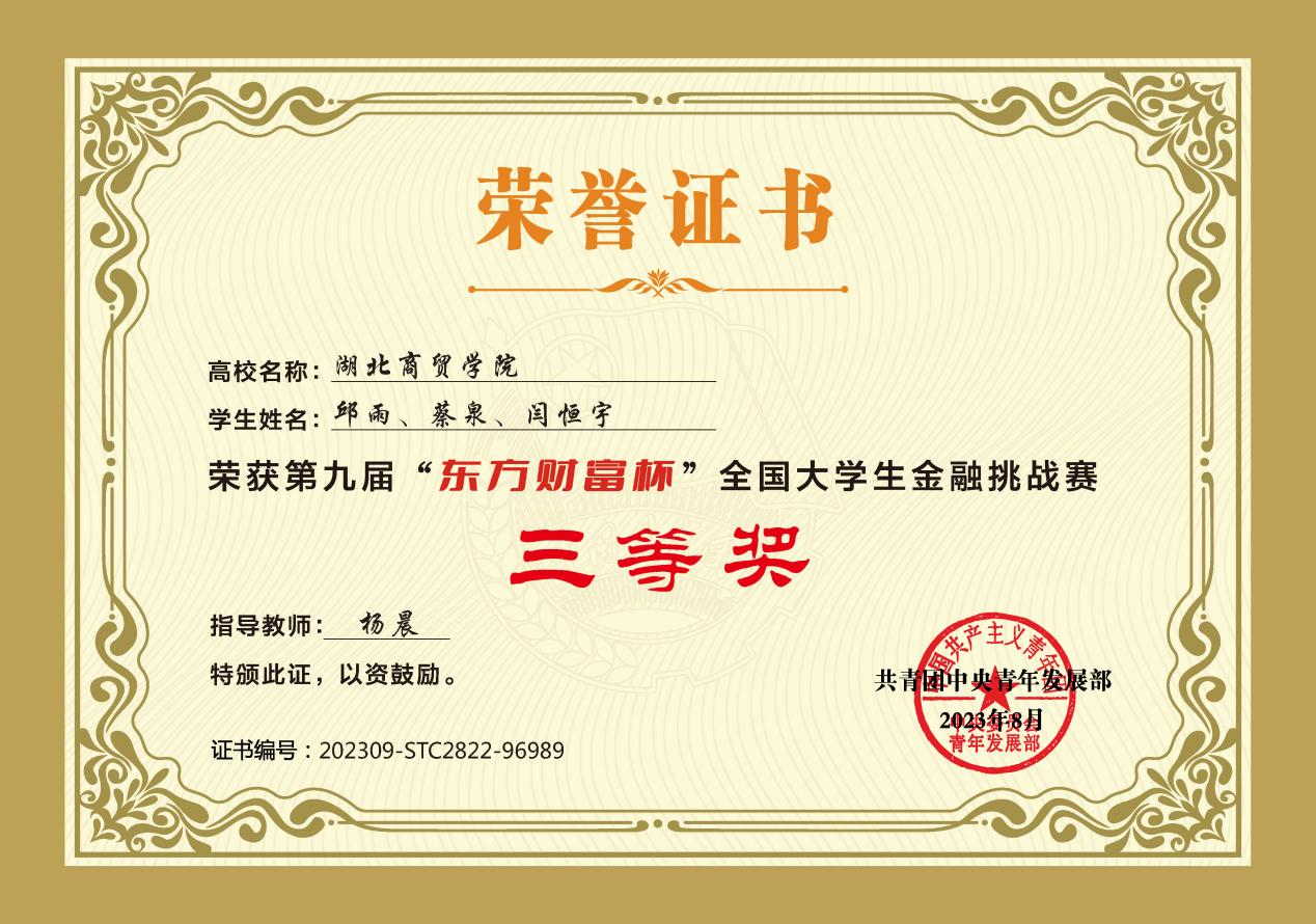 由共青团中央青年发展部主办,全国学校共青团研究中心、东方财富信息股份有限公司承办的2023年“东方财富杯”全国老员工金融素养提升活动——第九届“东方财富杯”全国老员工金融挑战赛已成功落下帷幕。经济学院1支团队荣获国家三等奖、2支团队荣获省级一等奖、1支团队荣获省级二等奖。