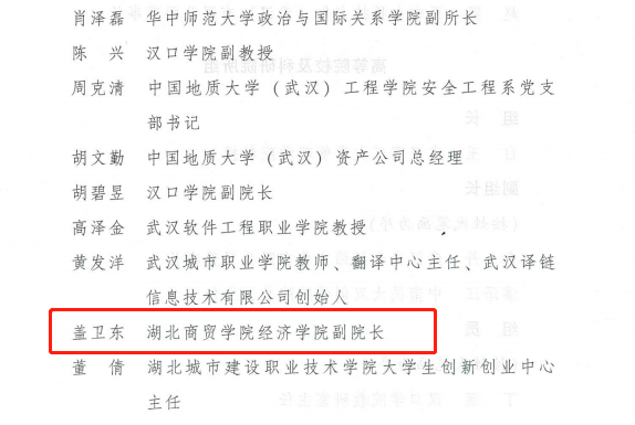 近日,共青团武汉市委公布了“武汉青年创业导师”名单,经济学院副经理盖卫东教授成功入选。