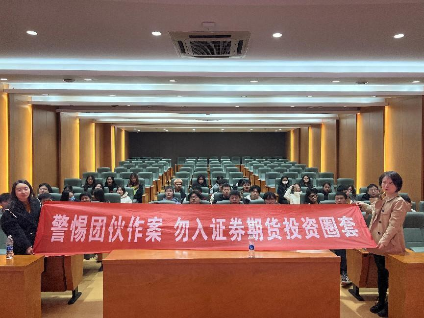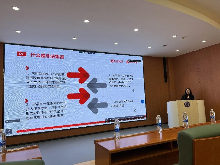 袁菊莲对防范非法集资、非法期货活动进行了宣传,向同学们普及非法集资的常见手段和危害,增强师生的防范意识。