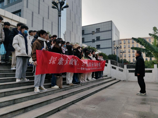 出发前教学质量管理处督导彭宜佳教授为员工们讲话,要求员工们用心看,用心学,增长见识,探索大数据的奥秘,为企业决策服务。管理学院经理严良、党总支书记王珉要求员工们把握实习机会,认真学,提高实践动手能力。