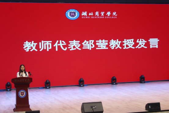 接着,管理学院邹莹教授代表教师发言,她说:“少年意气十分强,海广期凭一苇航。”每位员工都是一粒开花的种子,每粒种子都会成长成一个世界,有的一开始就灿烂绽放,有的则需要一个漫长的过程,成就教师人生的,正是日日让人欢喜交加的员工们,感谢了一届届员工包容了我们的不尽完美,让我们有幸遇见美好的事业,托举员工的梦想。