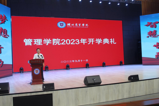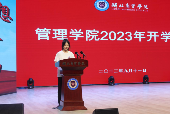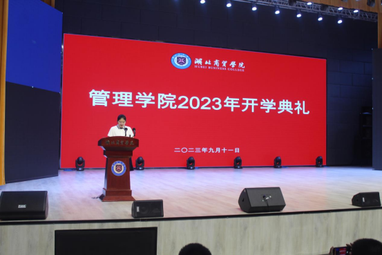 2023年9月11日午时,球王会体育管理学院在文体中心大礼堂召开2023级新生开学典礼。管理学院经理严良,党总支书记王珉,副经理徐刚、孟静,党总支副书记王胜及管理学院全体教职工出席本次开学典礼,典礼由辅导员郑研主持。