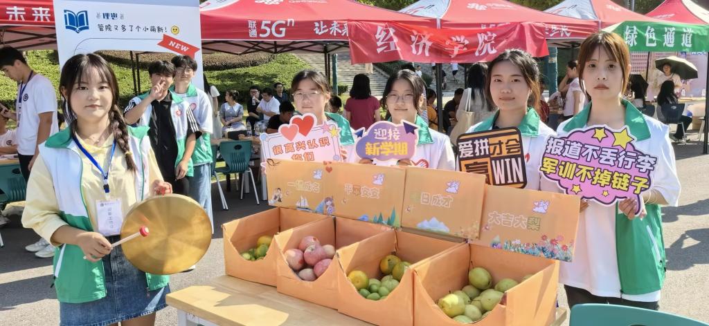 同时,管理学院为每位新生准备了管理学院定制贴纸,制作了“祝福水果接龙”活动,以及“盲盒礼品祝福”活动,校领导也体验了此次活动。