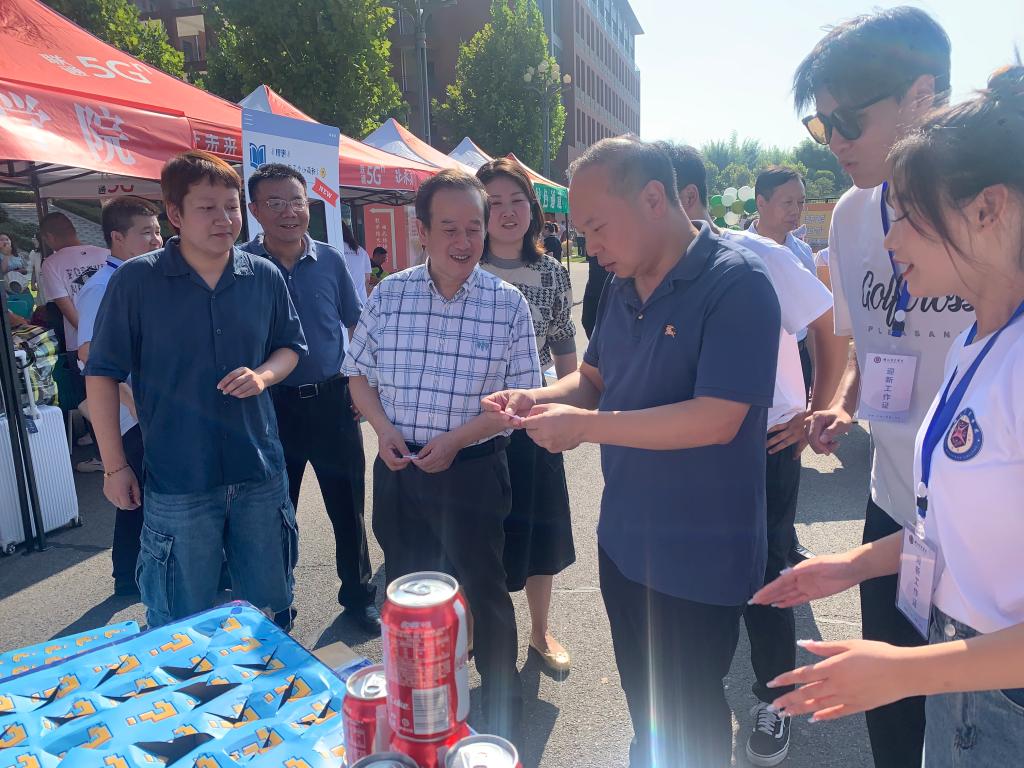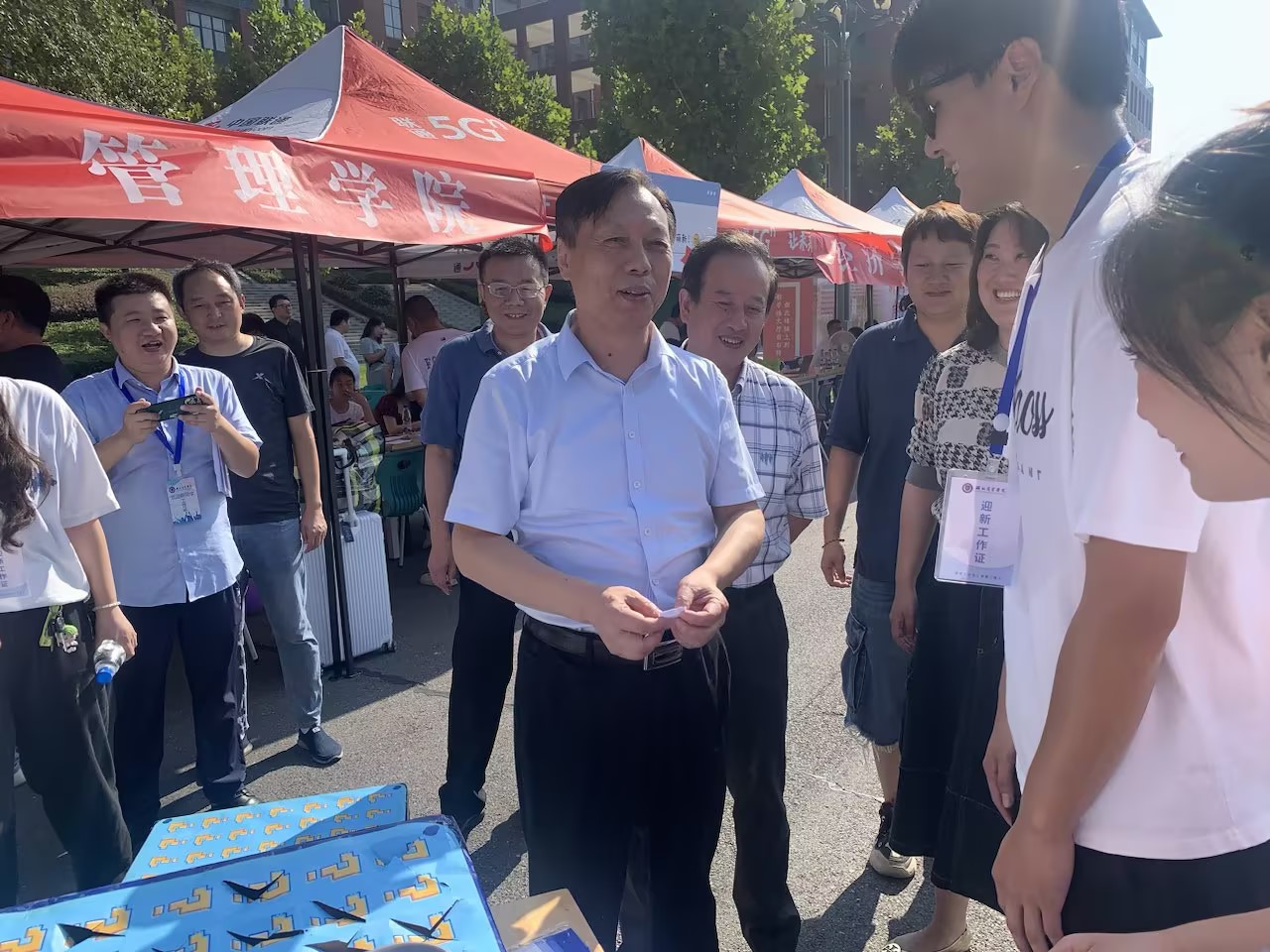 管理学院在咸宁校区的迎新现场开展教师节主题活动,校领导与管理学院教师、员工一同分享这份喜悦,并将贺卡、蛋糕、盆栽与管理学院定制的帆布包赠与管理学院老师。