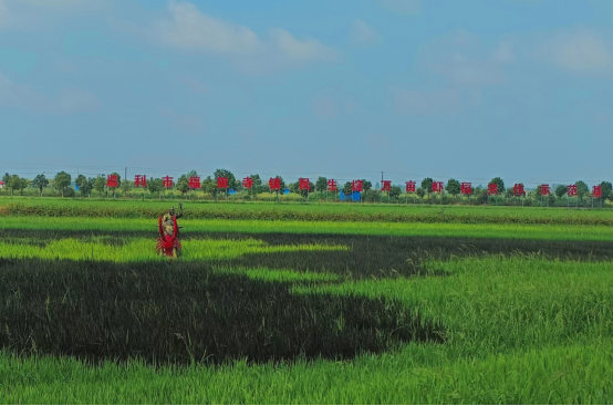 实践团成员来到了万亩虾稻共作示范基地后,柳华中村支书热情地迎接了我们,带领我们参观了部分示范田。