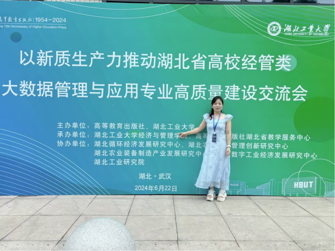 为落实国家教育数字化战略行动,推进教育数字化转型,促进大数据管理与应用专业的高质量发展,6月22日,大数据管理与应用教研室主任卢红霞参加了湖北工业大学和高等教育出版社联合举办的新生产力推动湖北省高校经管类大数据管理与应用专业高质量发展建设交流会。