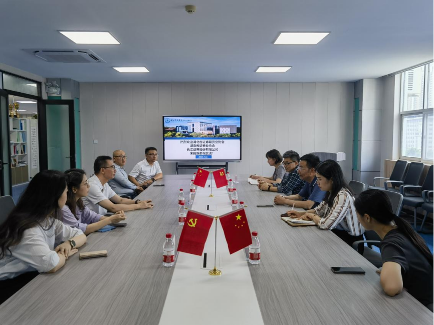 7月11日下午,湖北证券期货业协会秘书长李翎、湖南期货业协会刘丹岳、长江证券投教专员王凯一行来学院进行交流,并参观学校新金融智慧学习工场。学院经理严良、副经理孟静、陈红兵、金融教研室徐若瑜和张盼参加本次交流。