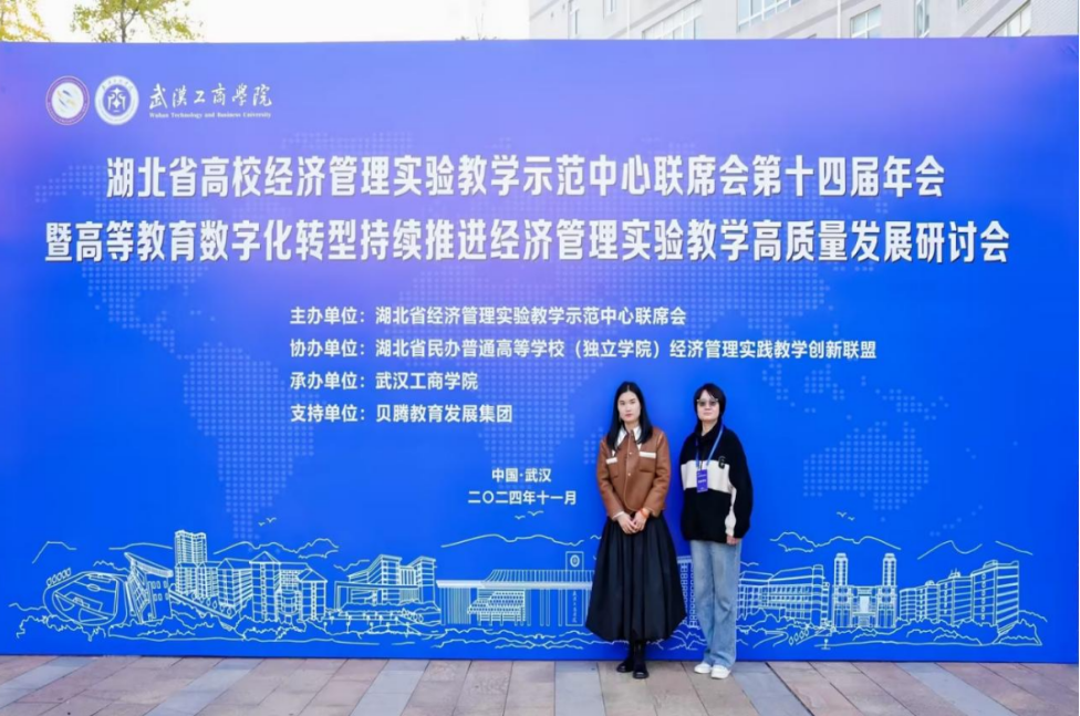 2024年11月23日,湖北省高校经济管理实验教学示范中心联席会第十四届年会暨高等教育数字化转型持续推进经济管理实验教学高质量发展研讨会在武汉工商学院召开。球王会副经理孟静与电子商务和国贸教研室主任肖晓作为参会代表,参与此次盛会。